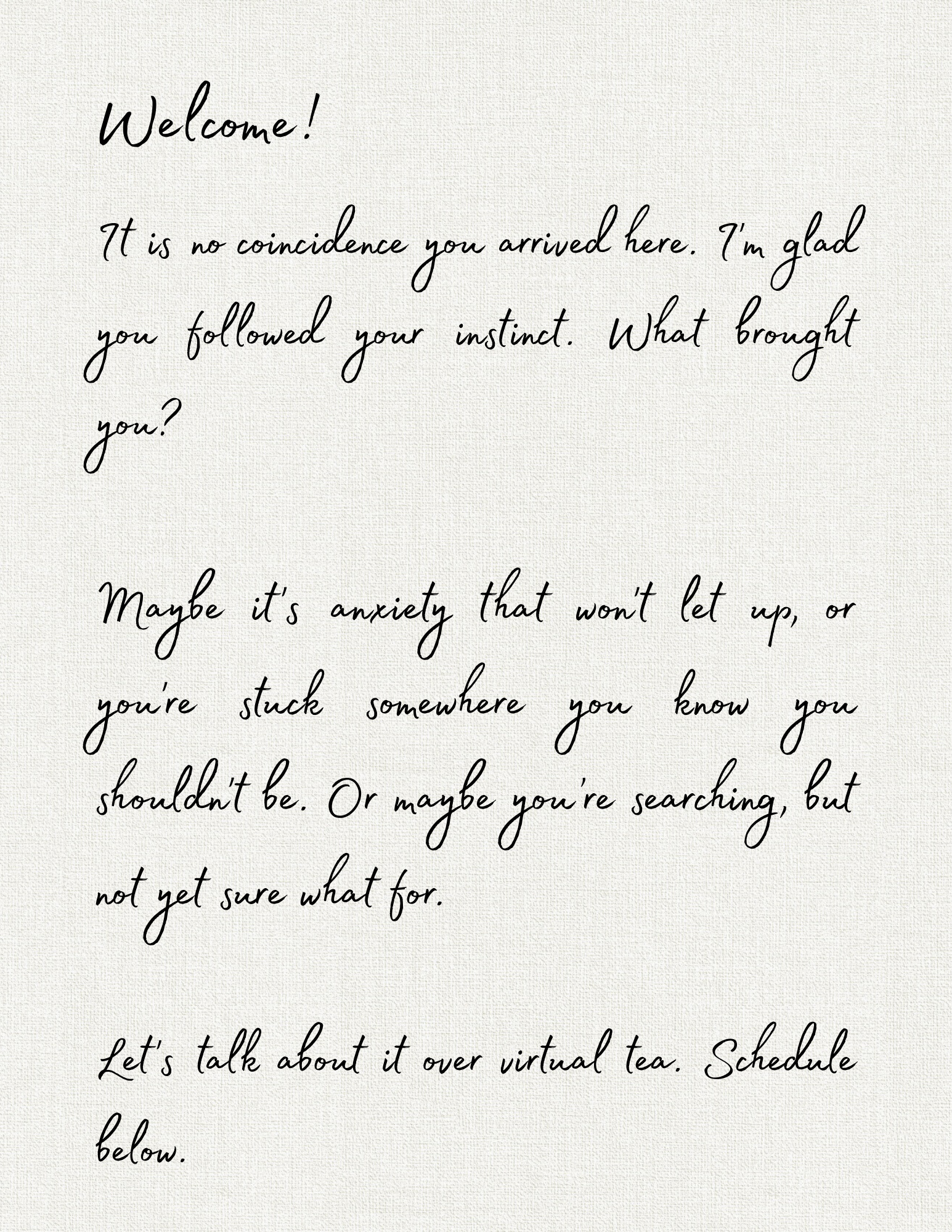 Let’s explore whether we’re a good fit for each other. We’ll meet for a complimentary 20-minute chat in my private Meditation portal – a one-of-a-kind space created for genuine connection.